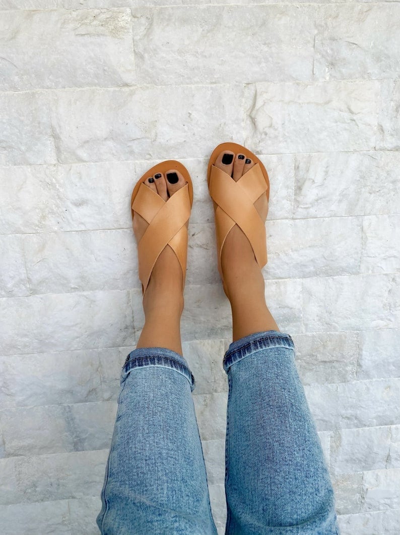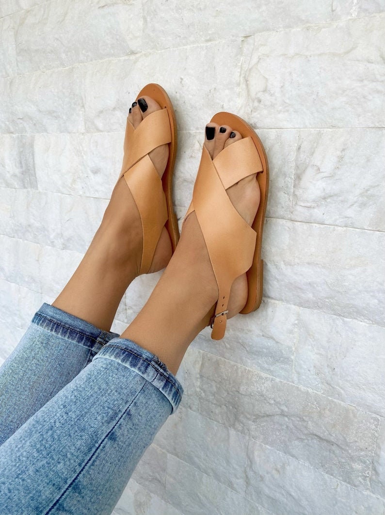 Slingback Sandals in X Design made from 100% genuine leather. You can also find them without the back strap in brown and black color as well in my store. Read the description below. Find them only at us Store.